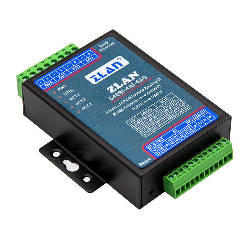 ZLAN6408I-4AI-4AO is a small-sized and cost-effective AI and AO product developed by Shanghai Zhuolan. It supports analog input and output and is specifically designed for industrial automation scenarios.